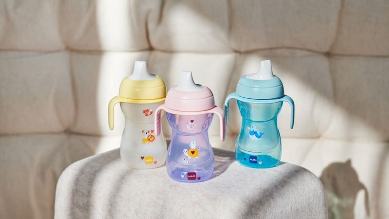Linha de copos da MAM acompanha as etapas do desenvolvimento infantil, oferecendo o suporte ideal para cada fase do bebê