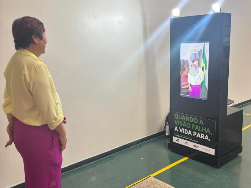 Em alusão ao Dia Mundial da Visão, a Câmara dos Deputados recebeu na última quinta-feira, 9 de outubro, uma ação interativa de conscientização sobre a importância do cuidado com a saúde ocular e do diagnóstico precoce das doenças que podem levar à perda da visão. Com o mote “Quando a visão falha, a vida para”, a ação contou com duas experiências sensoriais, além do lançamento de uma campanha virtual para esclarecer e sensibilizar sobre o tema. No pórtico com acrílico, os visitantes puderam ver através da estrutura que simula a visão comprometida por doenças oculares, como a retinopatia diabética. Já o totem fotográfico permitiu que cada pessoa registrasse duas imagens: uma normal e outra simulando a visão afetada, reforçando a mensagem de que “não é só a visão que se perde, mas também a alegria de reconhecer quem se ama”.
